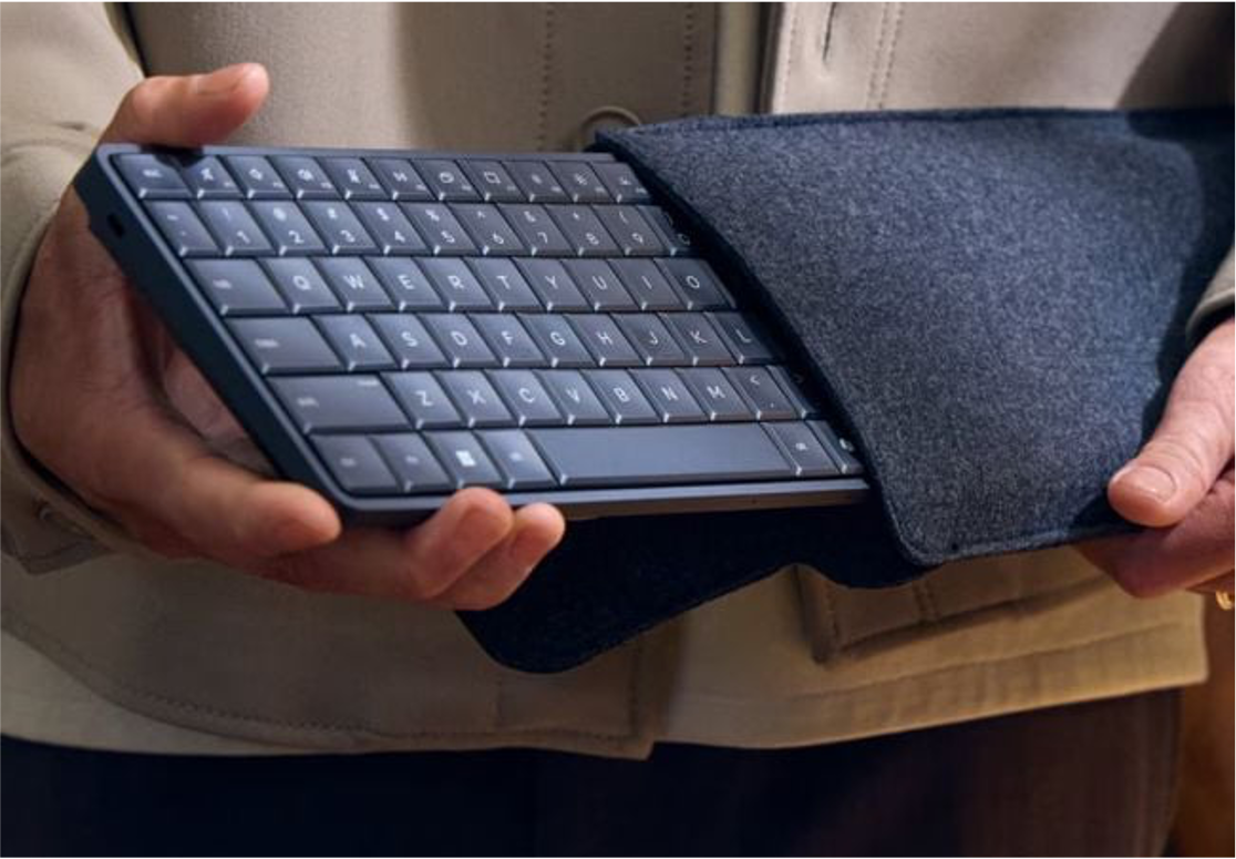 La idea es simple: llegar a una oficina, hotel o sala de juntas, conectar el teclado a una pantalla y trabajar con toda la potencia de una PC con IA, sin cargar una laptop voluminosa.